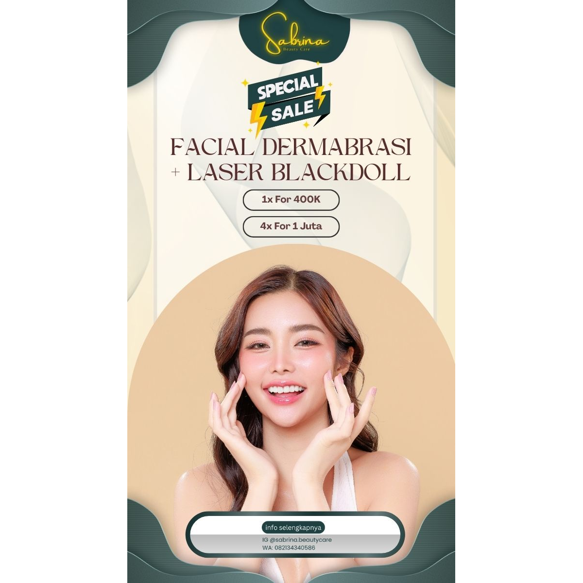 Temukan kecantikan sejati Anda di Sabrina Beauty Care! Dengan perawatan yang dirancang khusus untuk setiap individu, kami siap membantu Anda bersinar.